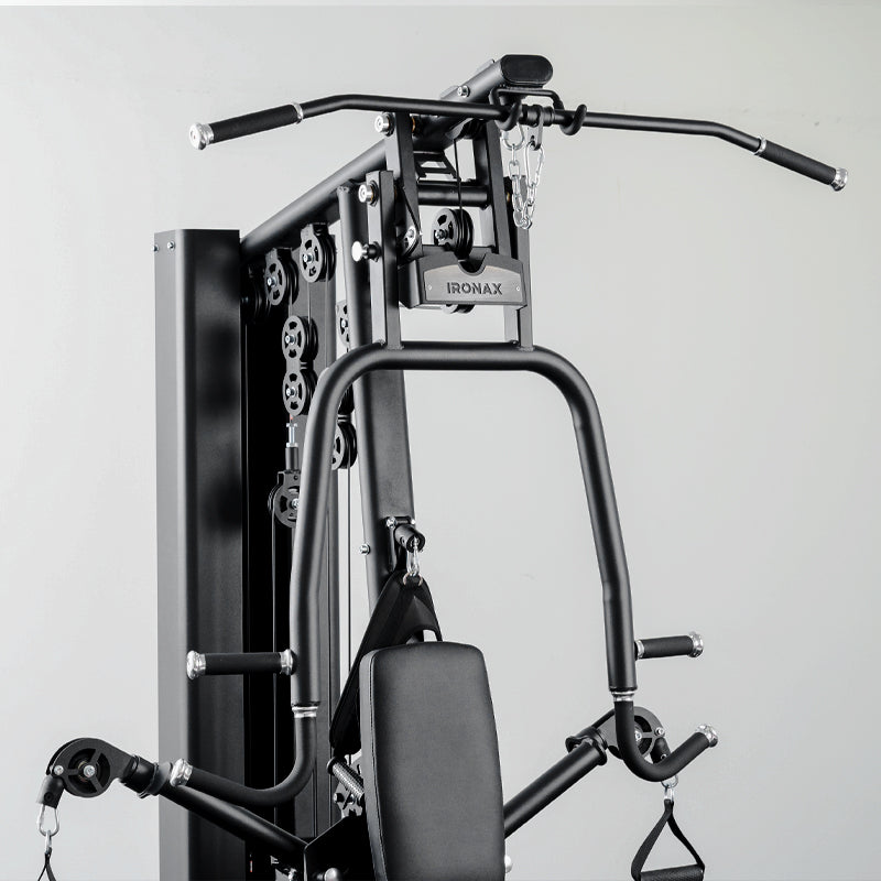 The sleek and versatile Ironax XHG Home Gym brings you unmatched functionality, performance, and style all in one complete system. With a 200 lb pin-loaded weight stack, aluminum pulleys, and a multi-position design, this home gym delivers a full-body workout that meets the needs of individuals and families alike.