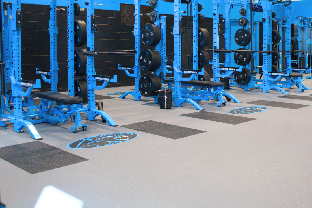 From turf tracks to weight room rubber, we help you Build Your Great from the ground up. Our flooring options are available in a variety of colors and can be customized with your facility’s logo — including turf fields, rubber tiles, and integrated platform inlays. It’s functional flooring with a professional, branded finish.